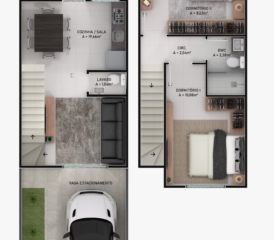 TÉRREO: Sala, Cozinha, Lavabo, Lavanderia , Área Privativa nos fundos e Vaga de Garagem
